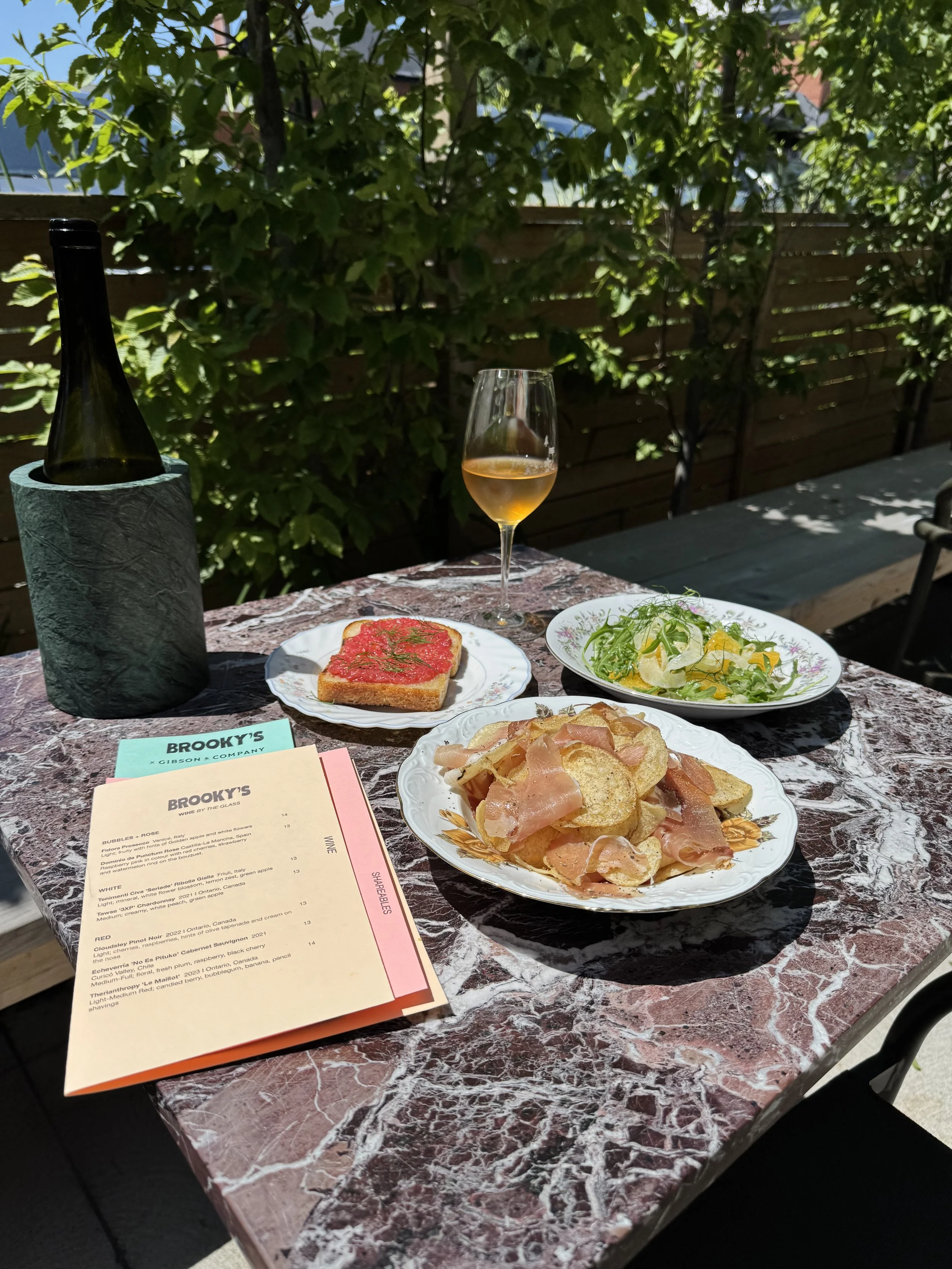 We’re Brooky’s—a wine bar and neighbourhood café in Collingwood, Ontario. We aim to be the kind of space you’ll want to return to—whether it’s for your morning coffee, a midday bite, a night cap, or one of those in-between moments that turn into something memorable. Open daily from 8am to 9pm for drinks & light snacks. Shareable menu is available thursday-sunday.
